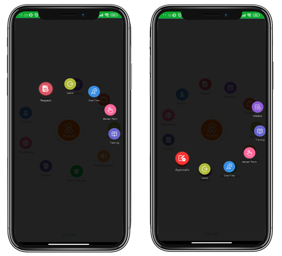 Your employee can apply leave, overtime, manual punch and training requests through the mobile application which will go to approval process.