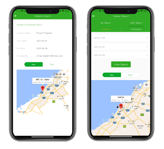 Field employees can report their exact and current location using outdoor punch either scheduled/unscheduled.